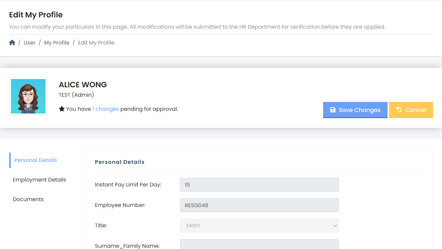 Step 3: Make the appropriate changes to your personal details, employment details and any supporting documents.